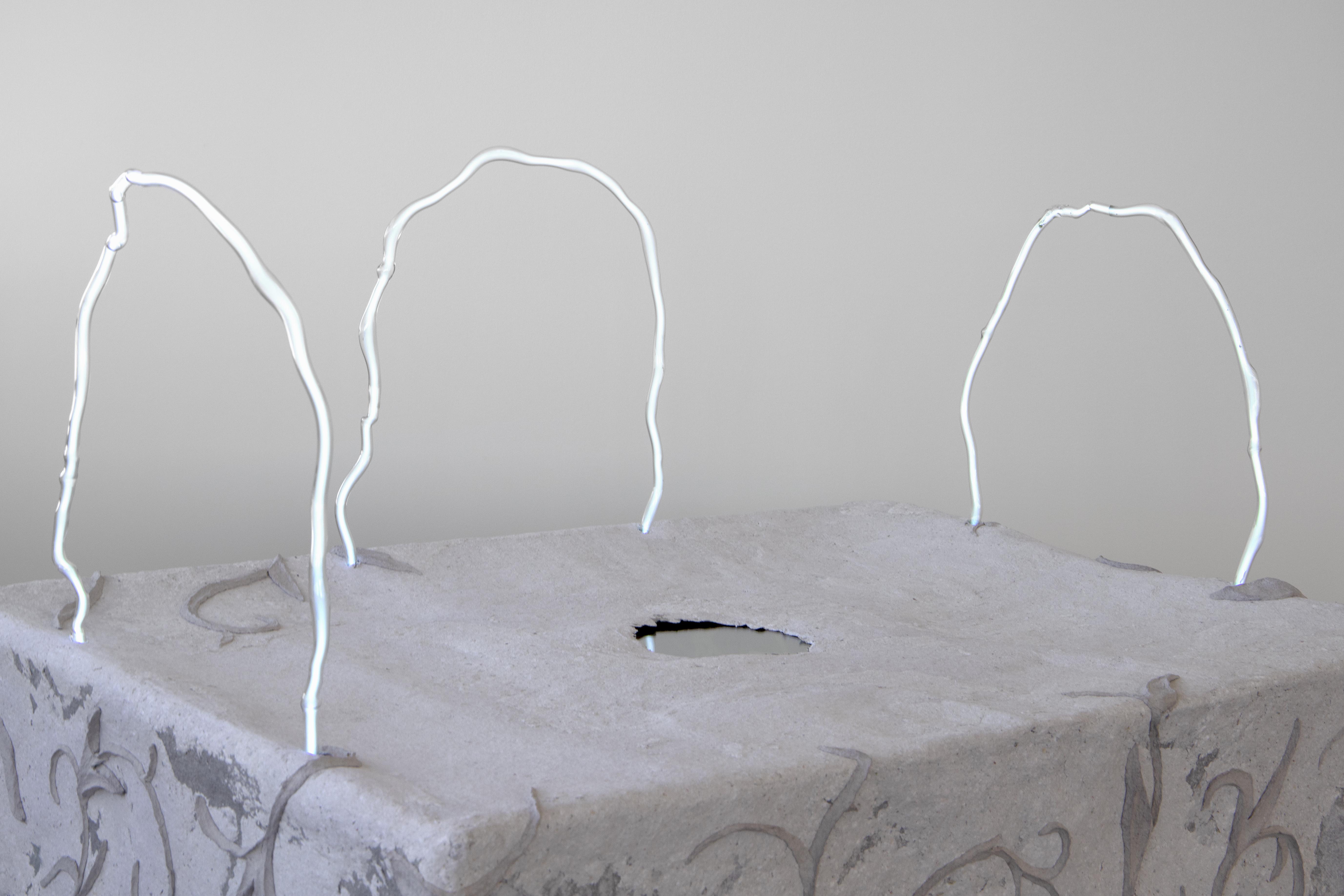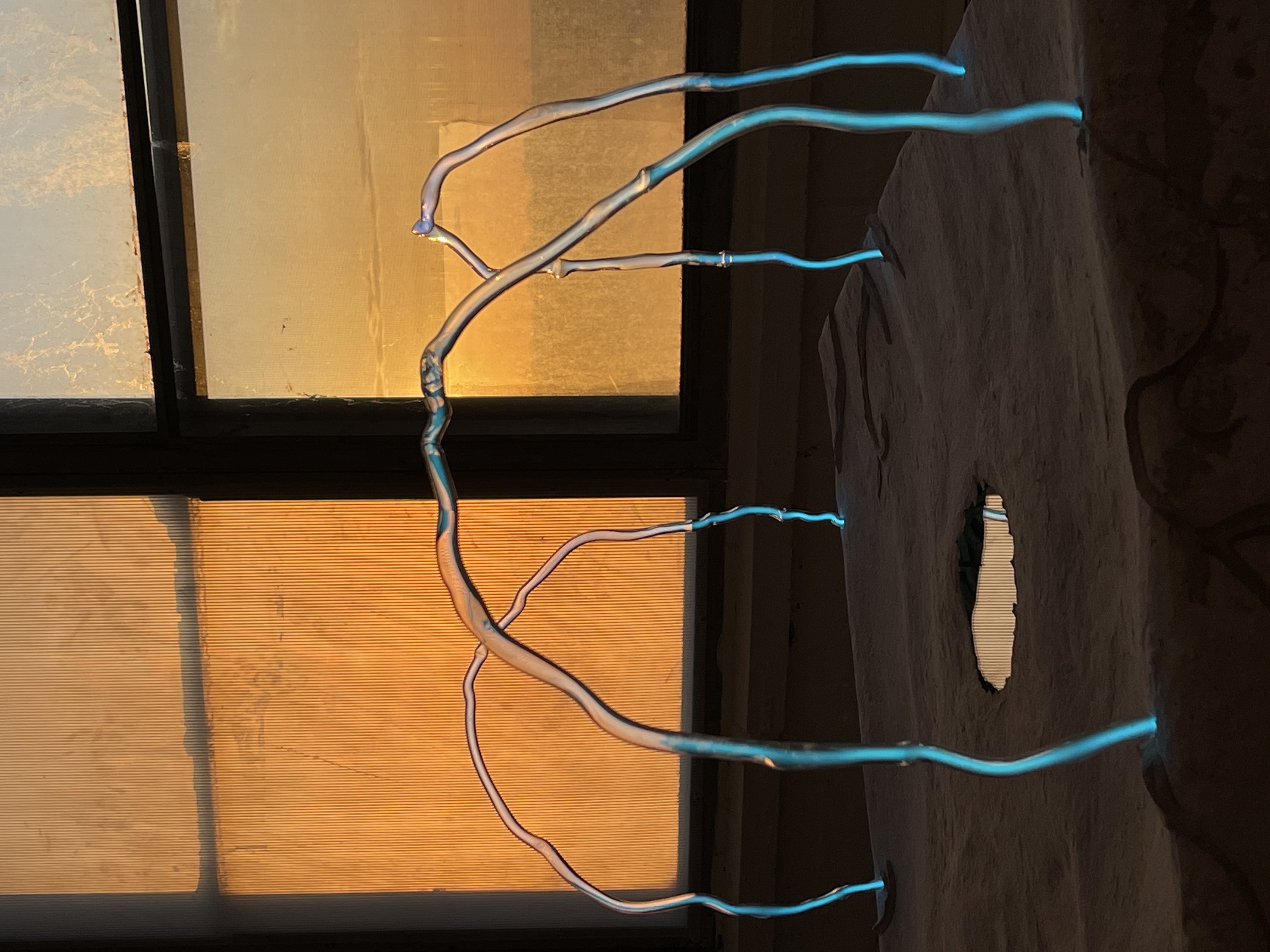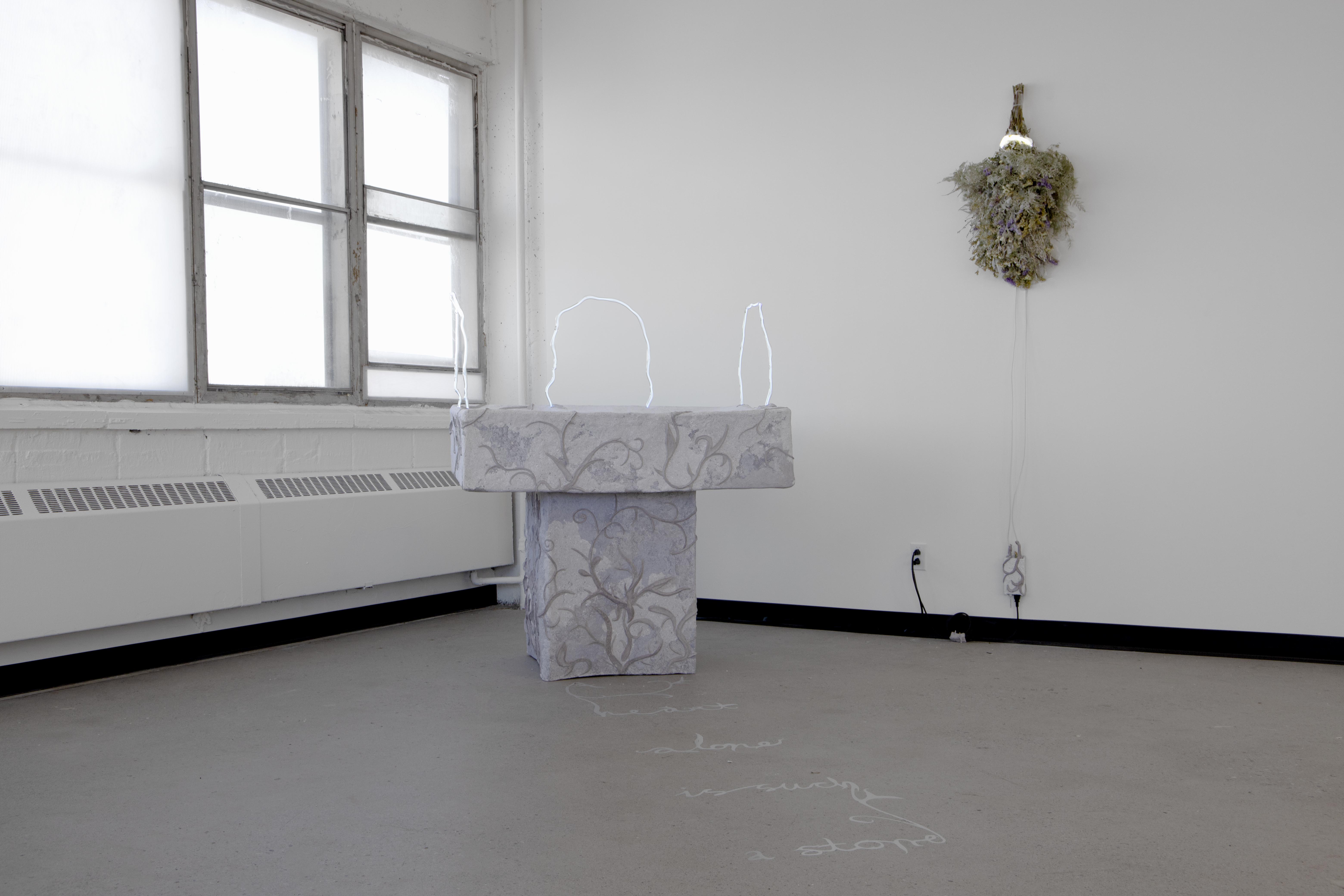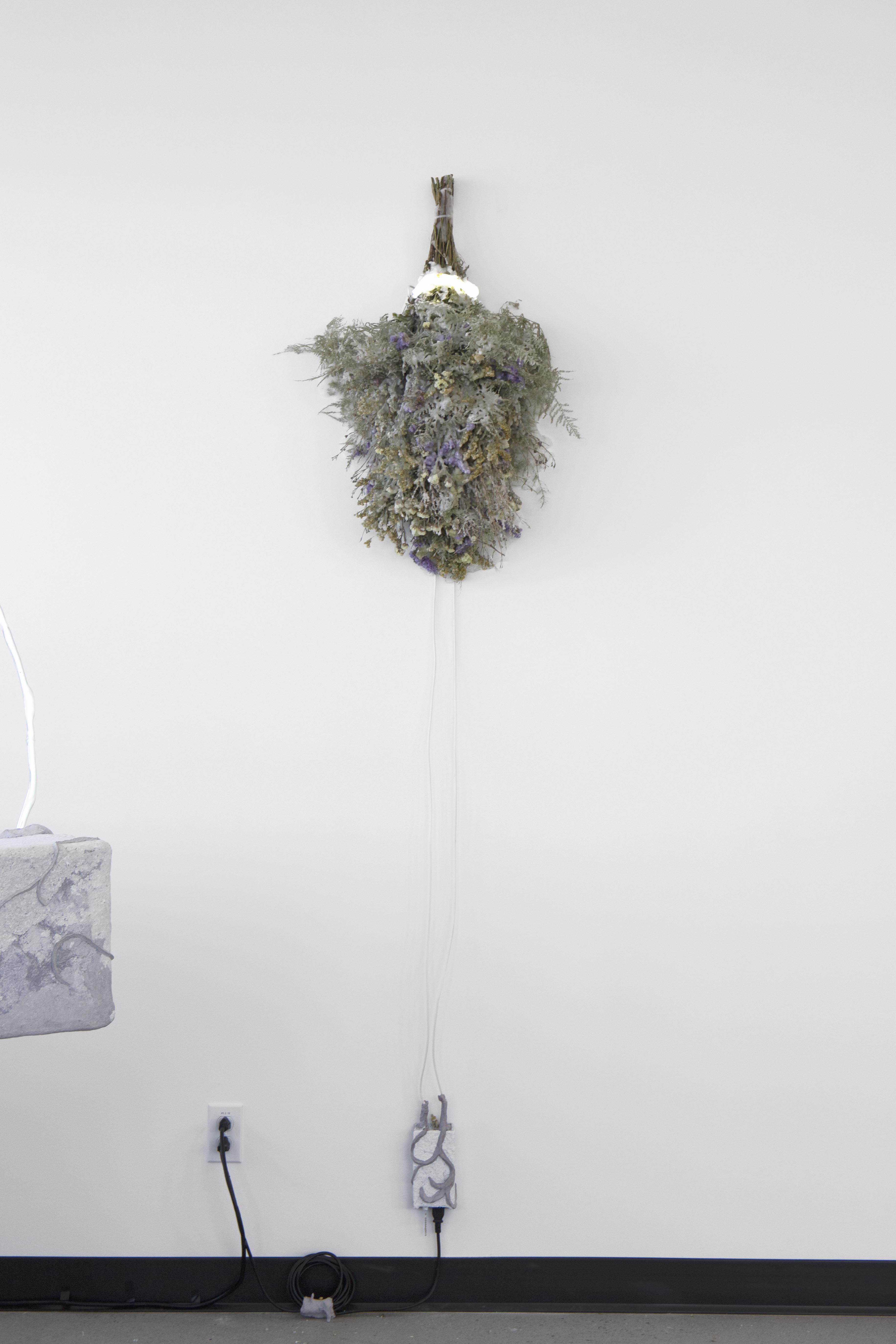 wax, neon, mirror, my father’s financial papers, flower from the ceremony, vinyl